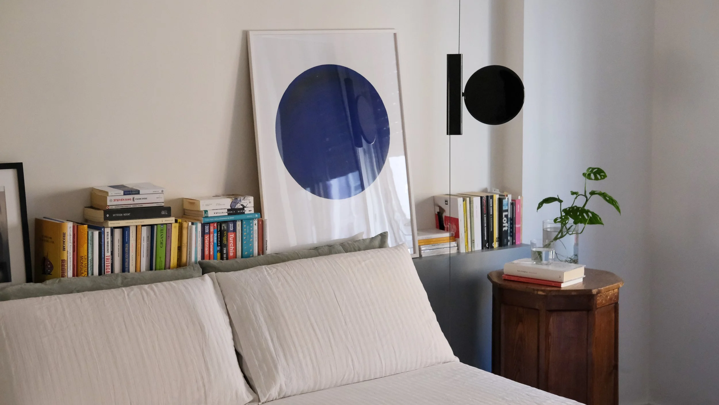 L’abitazione si trova ai piani alti di un edificio degli anni Cinquanta e si sviluppa su una superficie di circa 80 metri quadrati. L’orientamento est-ovest garantisce un costante apporto di luce naturale durante tutto l’arco della giornata.